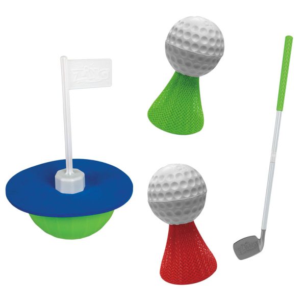 Set up your own golf course just by tossing out the flag target, then take a swing! Take turns hitting your ball until you can bump the flag. No need for tees when they are built into the ball, so you can play on hard surfaces without the ball rolling away. Use what’s around you as traps and obstacles to bring the game to another level. The self-righting flag target can even float on water! Bring the fun poolside by aiming at the floating target from the edge of the pool.