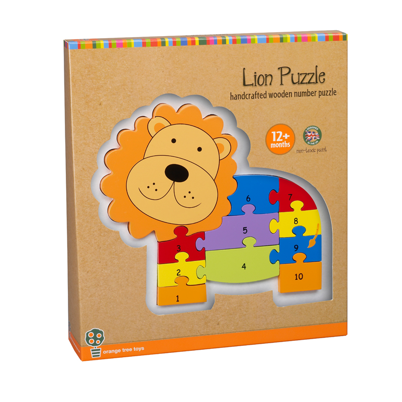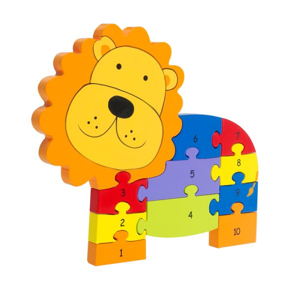 Introduce little ones to the numbers 1- 10 with this fun 11 piece wooden jigsaw puzzle in the shape of a lion. Painted in bright colours and printed with clear text, its chunky pieces are just right for small hands to grasp.