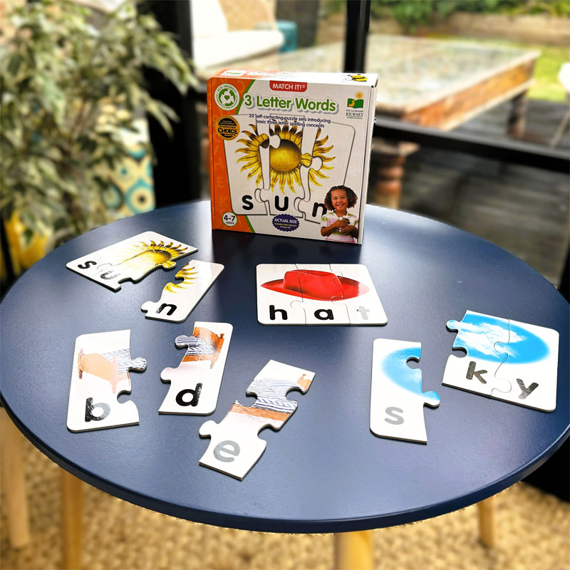 The thick, durable cardboard construction makes cards easy to grasp and use, and also a great way of improving hand-eye coordination and encouraging the development of essential motor skills. The self-correcting puzzle pieces means that only the correct pieces fit together. This means that they get the spelling right every time, making the puzzles ideal for both independent play and playing together. Reading can be a daunting prospect for young children, but the combination of pictures and letters makes the three-piece puzzles the ideal way to encourage and boost confidence in young children.