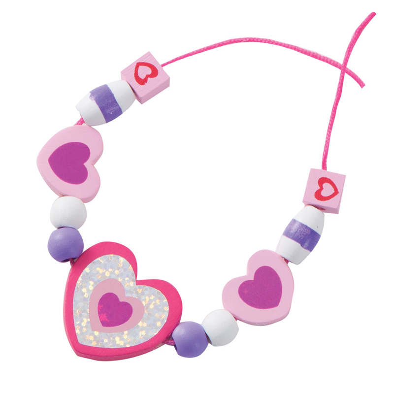 It’s easy to make three pretty necklaces with this simple beading set! This compact collection of wooden beads, including a wooden tray that makes the perfect contained work space, includes cubes, rounds, barrels, and giant hearts with glittering foil accents. In all, there are over 45 painted wooden pieces to mix, match, and arrange on three woven laces, allowing for lots of creativity and endless combinations! Kids love the simple process and pretty results when they lace the beads, knot to attach the clasp, and proudly wear their hand-made accessories.