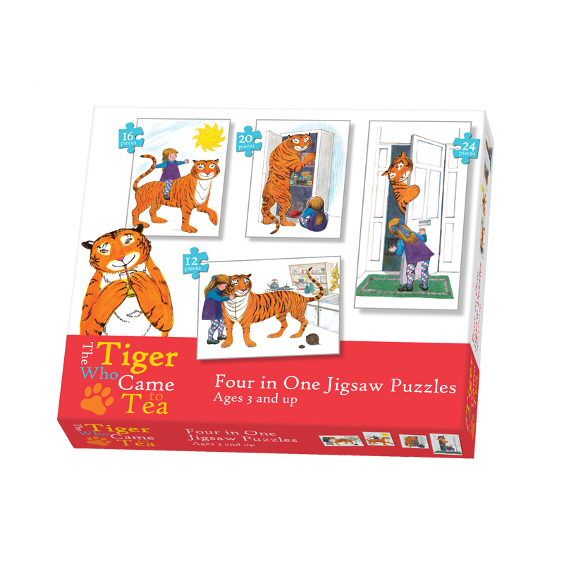 A set of four puzzles featuring images of Sophie and her extradinary tea-time guest from the classic book The Tiger Who Came for Tea. Each puzzle contains a different number of pieces allowing your child to progress to more difficult challenges and is excellent value for money.
