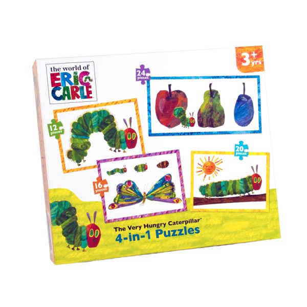 Four lots of fun in one box! Preschoolers who love Eric Carle’s timeless classic The Very Hungry Caterpillar will enjoy hours of fun with this colourful Very Hungry Caterpillar 4-in-1 Puzzle set. Created to entertain and engage children aged three years and up, the 4-in-1Puzzle set contains four jigsaws of 12, 16, 20 and 24 pieces featuring vibrant images of the Hungry Caterpillar, some of his favourite fruits and the lifecycle of the butterfly.